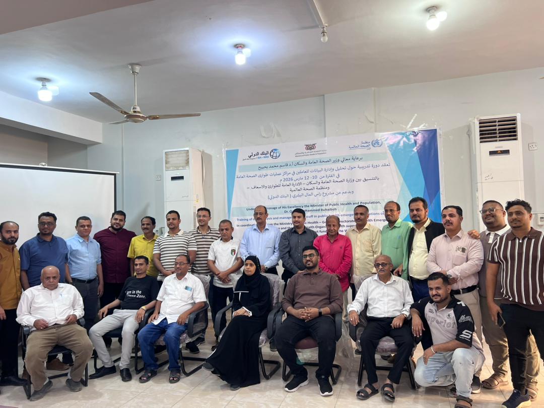 واستهدفت الدورة على مدى ثلاثة أيام، 27 كادراً من العاملين في مراكز عمليات طوارئ الصحة العامة على المستوى المركزي وفي عدد من المحافظات، بهدف تعزيز قدراتهم في مجال جمع وتحليل وإدارة البيانات المرتبطة بحالات الطوارئ والاستجابة السريعة للأحداث الصحية.