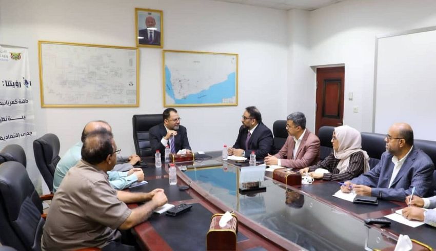 ناقش وزير الكهرباء والطاقة المهندس عدنان الكاف، اليوم، في العاصمة المؤقتة عدن، مع أمين عام الفريق الاقتصادي المهندس عمار العولقي، ملامح خطة التعافي الاقتصادي الحكومية في قطاع الكهرباء، والسُبل الكفيلة بتعزيز كفاءة واستدامة خدمات الطاقة.